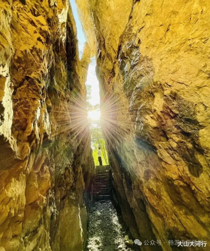 除了赏景,关山还是座活生生的“地质博物馆”。带孩子来这儿开展研学,可比在教室里看书有意思多了——能近距离触摸丹霞地貌的岩石,感受亿万年时光在石头上留下的纹路;能钻进“一线天”里,亲身体验地裂形成的奇观(最窄处只有20厘米,两个人并排走都得侧着身子);还能听专业讲师讲地壳运动的奥秘,知道那些奇形怪状的石柱、峡谷是怎么来的。在这里,地质知识不再是书本上枯燥的文字,而是能摸得着、看得见的真实景象。